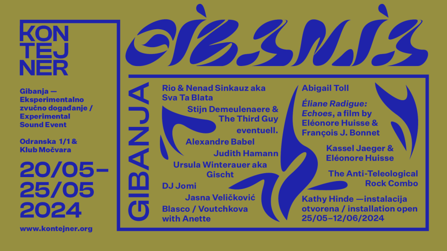 Osim uzbudljivog programa, Gibanja nastoje biti i mjesto druženja i razmjene, mjesto zajedničkog bivanja u trenutku posvećenom zvuku, s novom centralnom adresom: Odranska 1/1. Naime, ovogodišnji se program, izuzev 23. svibnja kada gostujemo u klubu Močvara, održava u novom KONTEJNER-ovom prostoru u Cvjetnom naselju.