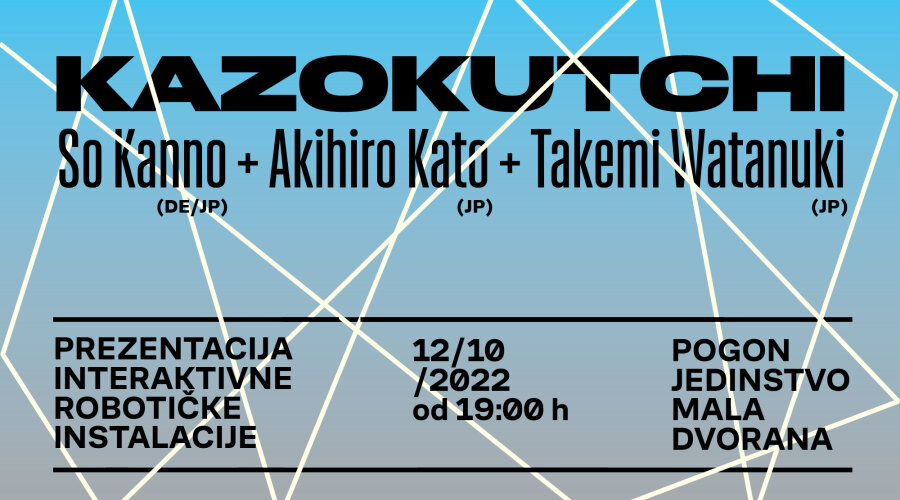 KONTEJNER je u sklopu ovogodišnje EMAP rezidencije ugostio tri japanska umjetnika – So Kanna, Akihira Katu i Takemija Watanukija koji su se tijekom zadnjih mjesec i pol usredotočili na daljnji razvoj rada Kazokutchi. Umjetnici će u srijedu 12. listopada 2022. godine od 19:00 h u prostoru male dvorane Pogona Jedinstvo održati prezentaciju rada u nastajanju.